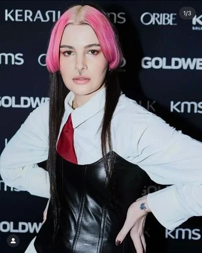 FRONT HAIRLINE: Foils: 40ml System Developer Lotion 9% + 20ml 11N. 10ml of LightDimensions Brightener Natural + 10ml SilkLift Lotion 3% at the basin for 5 mins to create “scandi” hairline. Toned hairline 30ml System Developer Lotion 2% + 5ml 9KG + 5ml 9GB + 5ml 9N
